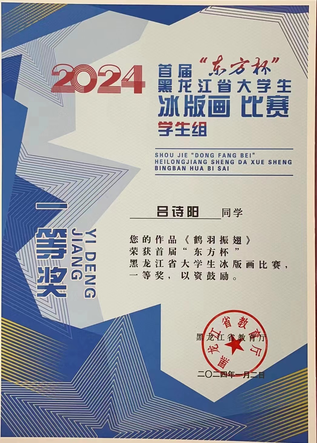 喜报:我学院师生在首届“东方杯”黑龙江省大学生冰版画比赛中获奖