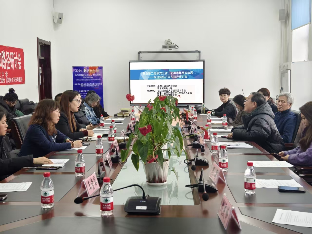2024.12.30日下午2点,由黑龙江省美术家协会、哈尔滨商业大学主办,哈尔滨商业大学设计艺术学院、黑龙江省美术家协会工艺美术艺委会、民进哈尔滨开明画院承办的“备战第二届黑龙江省工艺美术作品双年展——探讨创作方向和路径研讨会”在哈尔滨商业大学顺利举行,为设计学科发展带来诸多积极意义,明确了以双年展为契机的创作方向,有望推出优秀作品,提升设计学科影响力。