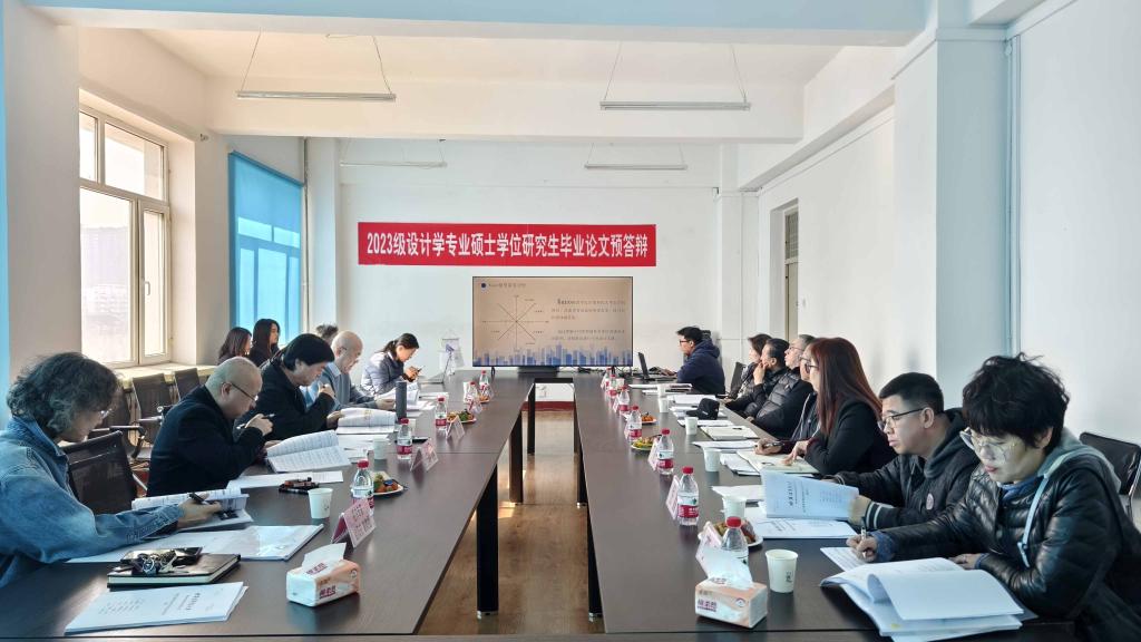 设计艺术学院于3月19日下午在哈尔滨商业大学南校区综合楼814会议室组织召开艺术设计学专业学位硕士研究生学位论文预答辩会议,由设计艺术学院副院长丁凌云主持会议,这是学院首届硕士研究生毕业生的预答辩会,此次预答辩会受到了学院的高度重视。答辩委员会专家阵容强大,答辩委员会由校内专家及校外专家共同组成。校外邀请了三位在设计领域颇具影响力的专家学者,其中由哈尔滨师范大学设计艺术学院原副院长张红松教授担任答辩委员会主席,东北林业大学家居与设计学院赵俊学教授以及黑龙江大学艺术学院王秀君教授也受邀出席,以及校内专家欧阳安副教授、王同旭教授。他们的丰富经验和专业见解为预答辩提供了坚实的学术支撑。学院党委书记陈明军、研究生导师王宝成、丁凌云、尚震、倪鑫、朱娜列席会议,绘画教研室主任李明和学院教师白月负责答辩记录。2023级艺术设计01班全体9名硕士研究生参加了本次预答辩。