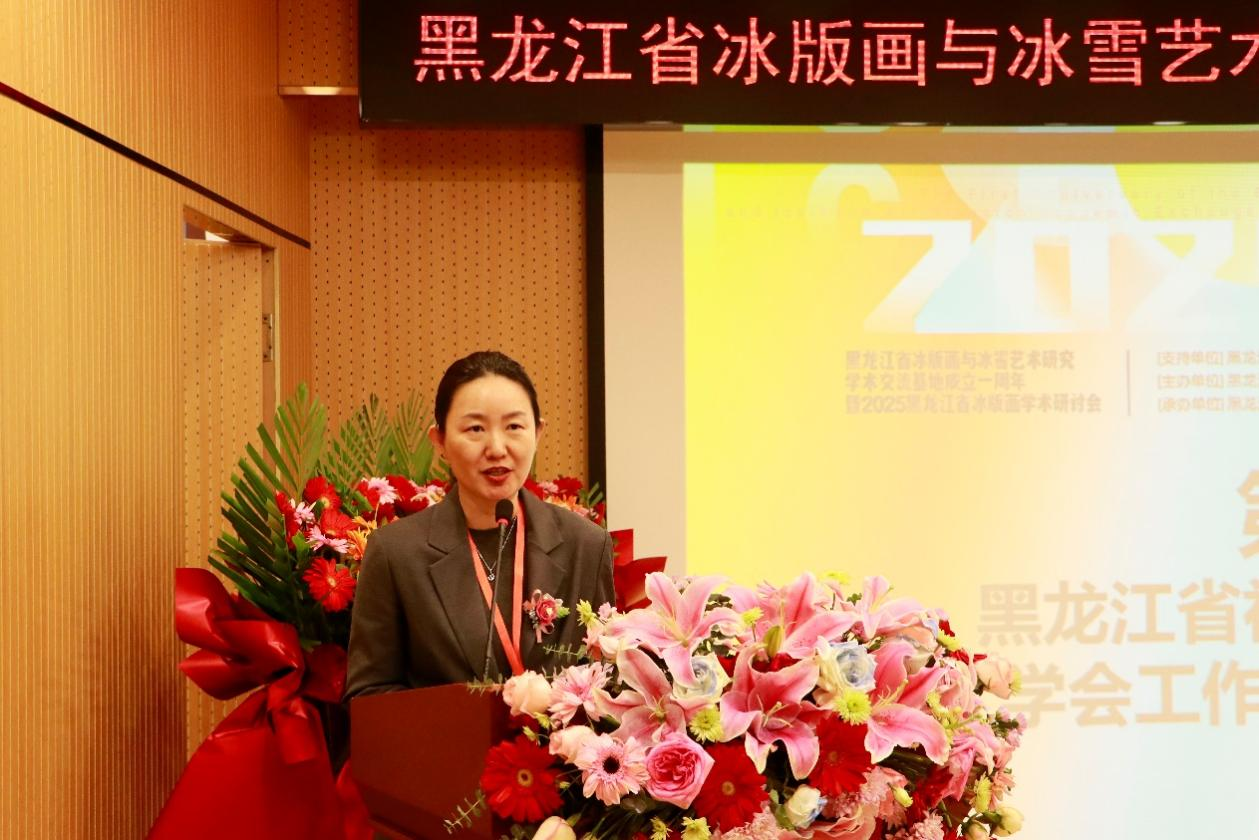 2025年11月29日,由黑龙江省社会科学界联合会指导,我校设计艺术学院与黑龙江东方学院艺术设计学院联合主办,黑龙江省冰版画与冰雪艺术研究学术交流基地承办的“岁启新章,冰版传情——黑龙江省冰版画与冰雪艺术研究学术交流基地”成立一周年庆典在黑龙江东方学院艺术设计学院成功举行。我校设计艺术学院副院长丁凌云出席庆典,与省内社科界、艺术界、教育界及企业界嘉宾共同见证这一重要时刻,共话冰雪艺术研究与发展新路径。