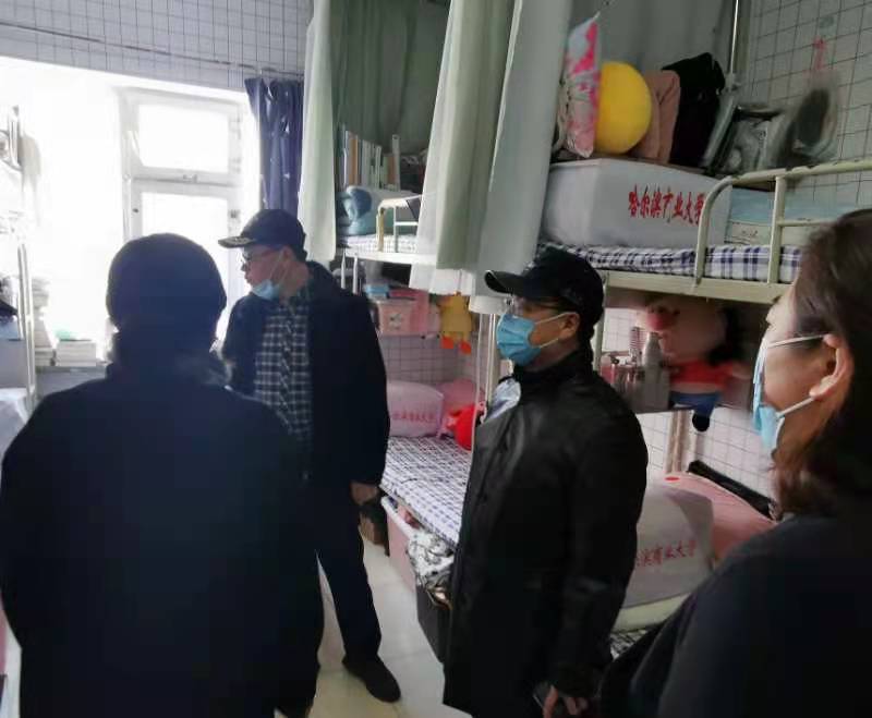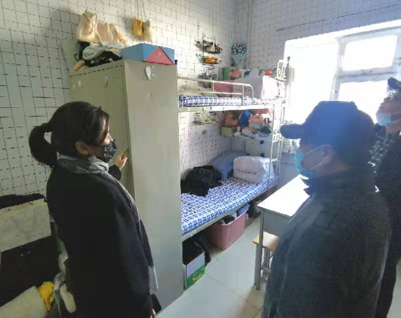 2.突击检查,人文关怀。此次检查为最大限度查摆安全、卫生等问题,采取突击检查方式。在检查过程中,学院领导和辅导员老师对走访的每一个寝室进行认真细致的检查,大到床铺位置的摆放,小到墙角卫生的清理,再到对违规电器的查找,每一处细节的把握都高度体现了学院对于此次检查的重视。与此同时学院领导与寝室学生亲切交谈,对返校后的学生思想动态进行深入了解,强调寝室安全卫生的重要意义,紧绷“安全”这根弦,做好卫生的“把关者”,希望珍惜来之不易的防疫成果,遵守学校疫情防控期间的各项管理规定,不负韶华、只争朝夕。