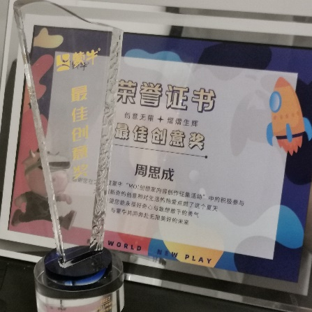 最后,再次庆祝设计艺术学院6位同学在本次蒙牛“MO!创想家内容创作征集活动”中荣获佳绩!