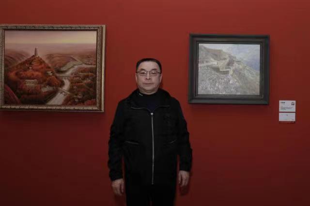 我院王宝成院长与其参展油画作品之一《眺望》合影