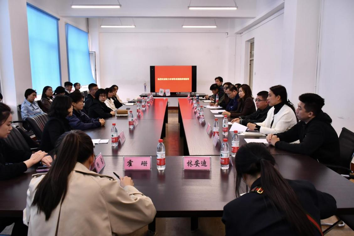 会议上,哈尔滨商业大学就业创业指导中心潘俊峰处长对铁力市政府创意设计产业调研代表团表示诚挚的欢迎,并对学校人才培养,就业创业等情况做出了相关介绍,表示日后希望双方通过不断的交流和学习建立起校地产、学、研多方面合作,为学生搭建平台,促进多方面的共创共赢。