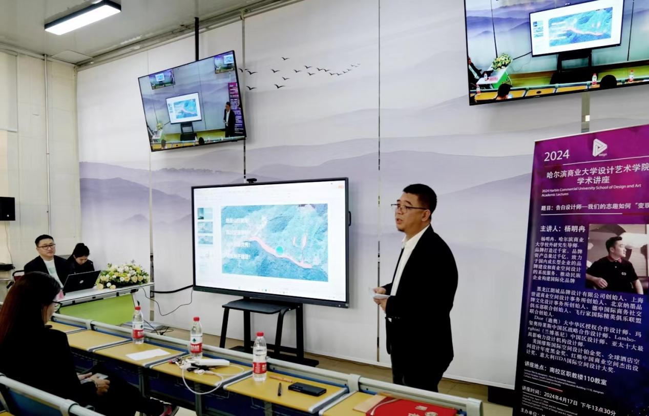 2024年4月17日下午13点30,一场题为“告白设计师-我们的志趣如何‘变现’”的学术讲座在哈尔滨商业大学南校区职教楼110教室成功举办。本次讲座由哈尔滨商业大学设计艺术学院主办,邀请杨明冉教授作为本次讲座的主讲嘉宾。