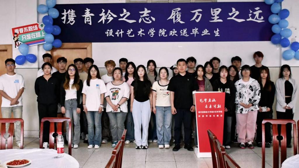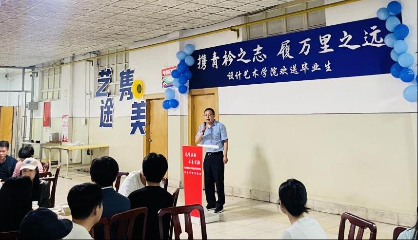 设计艺术学院党委书记陈明军、党委副书记崔寅、副院长周威、副院长丁凌云,副处级辅导员李明岩、行政秘书杨光、环境设计系主任倪鑫、绘画系主任李明、团委副书记贲庆福、毕业班辅导员李佳亮及2024届毕业生,大家围坐在一起,吃饺子、送祝福、话别离。