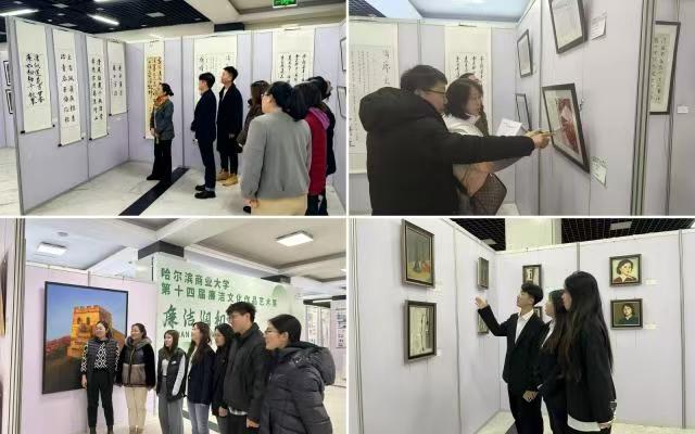 近日,我校第十四届廉洁文化艺术作品展在A区四号楼一楼大厅正式开展。此次活动由学校纪委办公室、党委宣传部联合主办,设计艺术学院承办。学校领导、机关党委各党支部集体进行了观展。