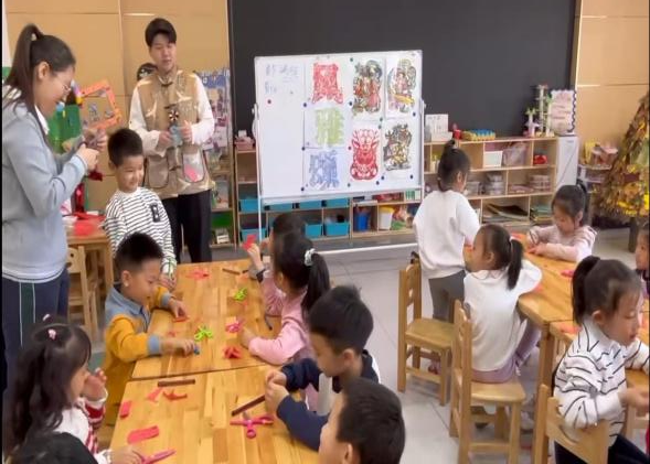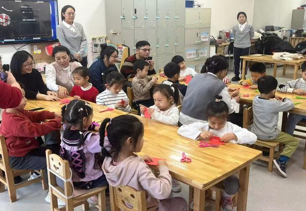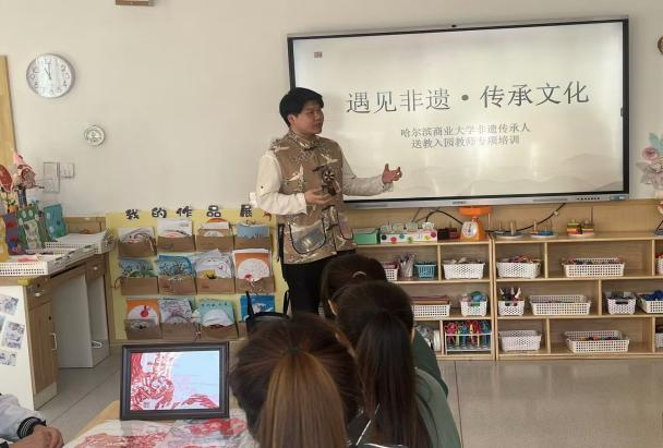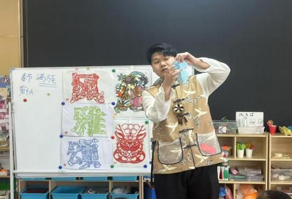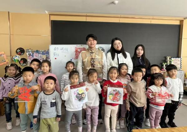 设计艺术学院学生李佳奥(满族非遗剪纸传承人)将具有浓郁黑龙江少数民族特色的剪纸艺术走进哈尔滨新区第四幼儿园。李佳奥首先向幼儿园师生介绍了满族非遗剪纸的起源和发展,并向大家展示不同主题和形式的作品,在场师生对这些技艺精巧、内涵丰富的剪纸作品赞叹不已,尤其是亚东会吉祥物“滨滨”和“妮妮”深受小朋友喜爱。李佳奥在现场亲手教孩子们剪纸,从折纸、画图到裁剪,耐心的指导孩子们每个制作步骤,孩子们也认真的完成了属于自己的剪纸作品,活动现场气氛热烈。
