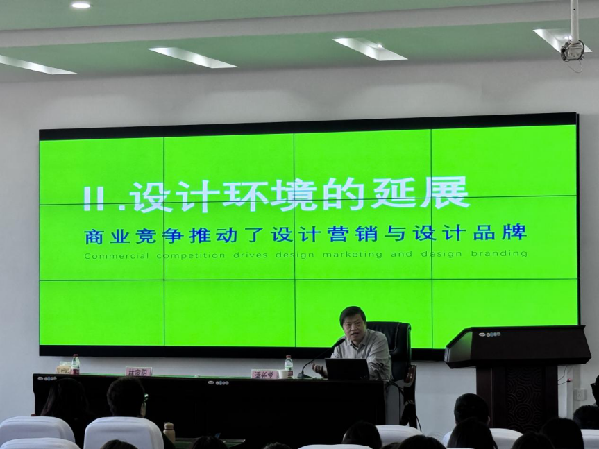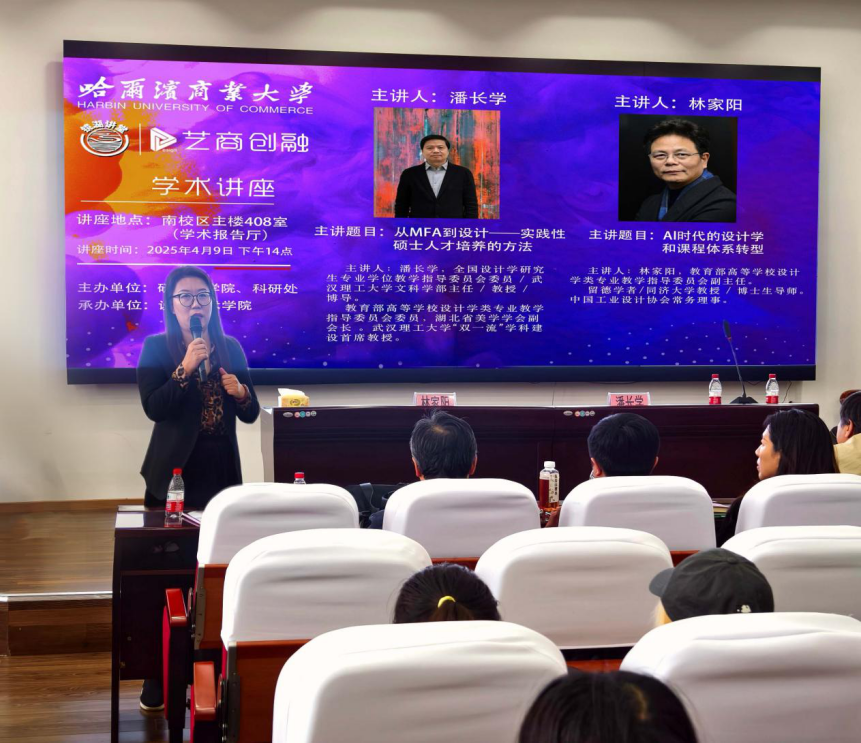 4月9日,“镜湖讲堂——艺商创融”活动在我校南校区主楼408报告厅举办。活动由研究生学院、科研处主办,设计艺术学院承办,邀请全国设计学研究生专业学位教学指导委员会委员、武汉理工大学潘长学教授,教育部高等学校设计学类专业教学指导委员会副主任、同济大学林家阳教授作专题讲座。设计艺术学院副院长丁凌云主持活动。设计艺术学院全体师生及业界代表聆听讲座。