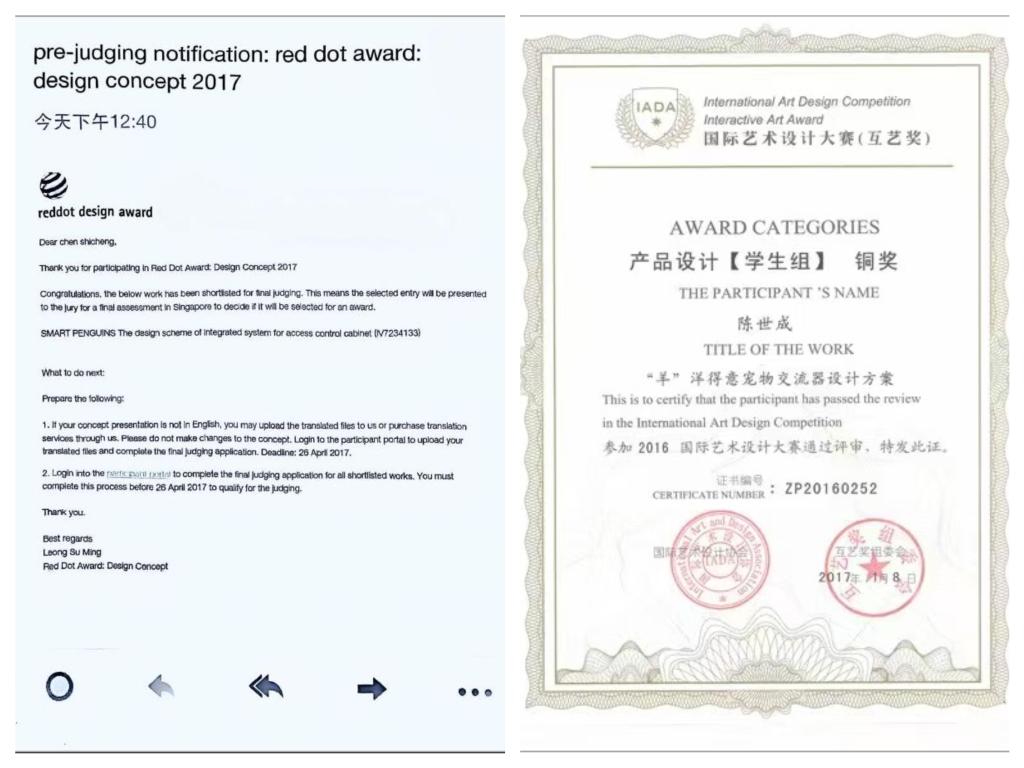 我意识到,专业能力才是学生建立自信的核心支撑。我结合自己研究的方向,指导小成参与专业竞赛。从选题构思到草图绘制,再到计算机辅助设计建模,我陪着他一遍遍打磨作品,手把手教他优化产品语意表达。那段时间,我们讨论的不仅是设计细节,更是如何用专业实力证明自己。2017年,小成的作品成功入围德国红点概念奖——这是我校设计专业学生获得的第一个世界级殊荣,也是对小成同学学习成果的最高肯定。如今的小成,已成长为国内知名设计公司的项目负责人,每次发来工作成果,都会特意提到:“老师,是您让我相信,我也能成为优秀的设计师。” 这句话让我深刻体会到,育人不是口号,而是用真心浇灌每一颗种子,用专业照亮每一段成长路。